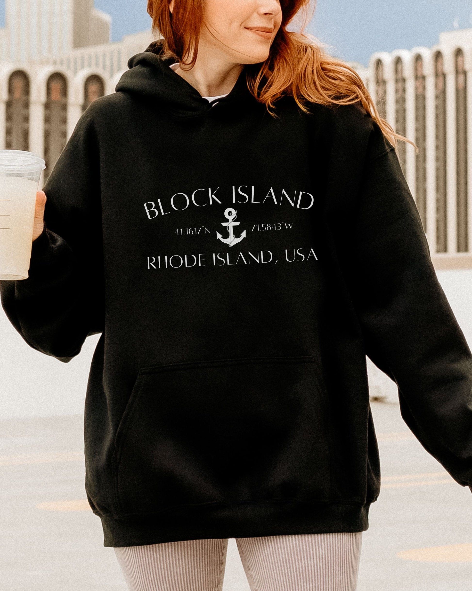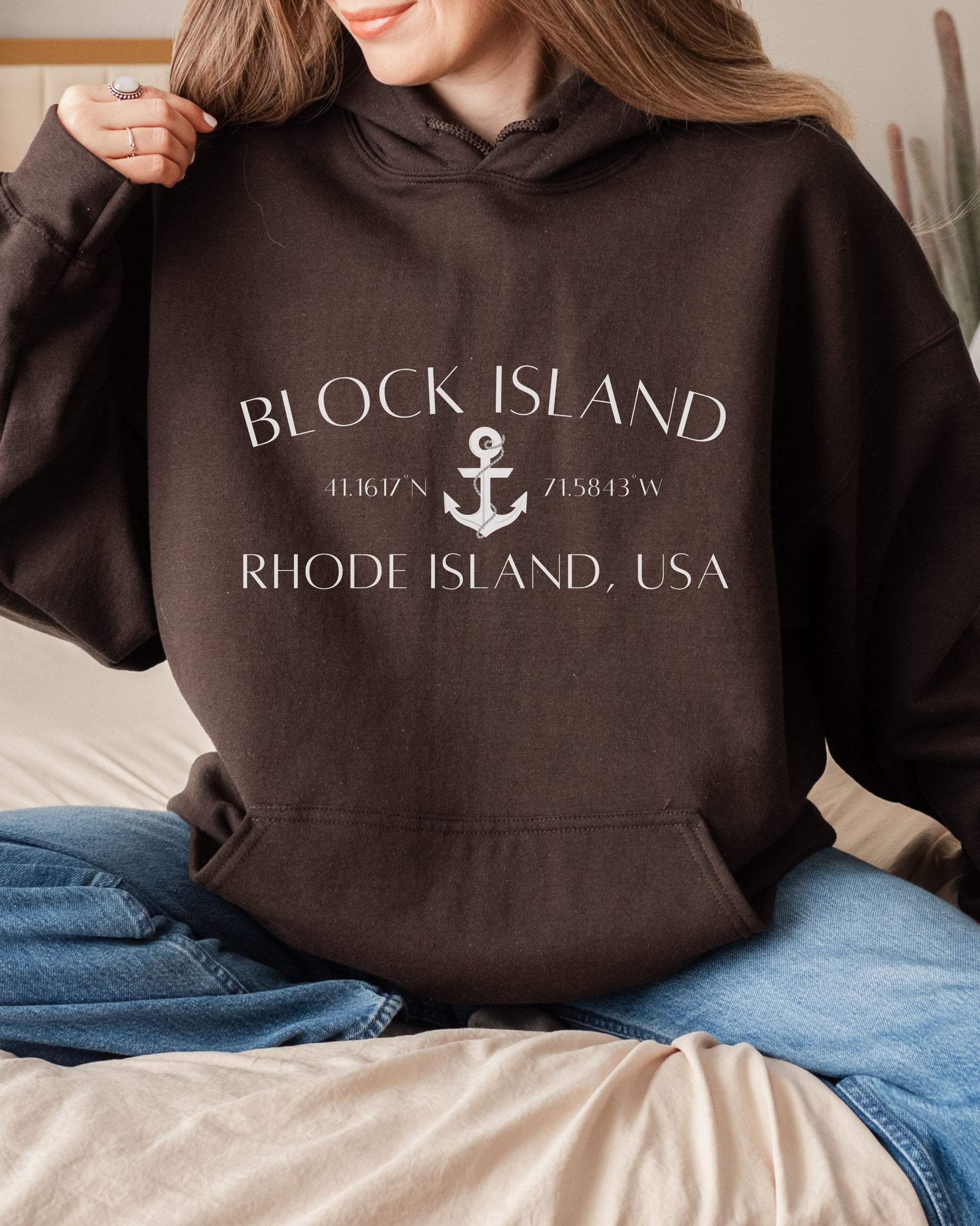 Block Island Rhode Island Hoodie – Gildan Graphic Hoodie with Anchor & Coordinates