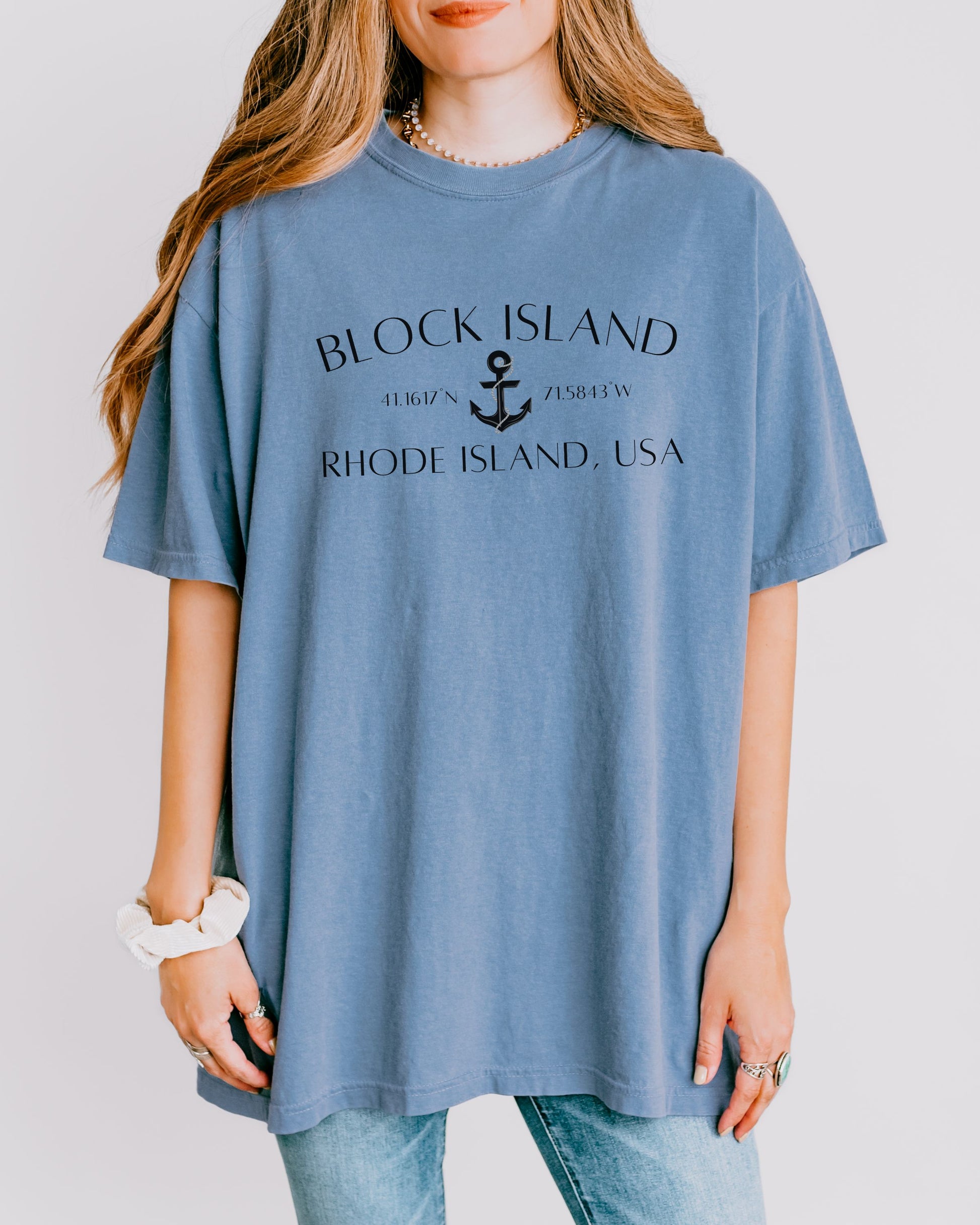 Block Island Rhode Island T-Shirt – Comfort Colors Nautical Tee with Anchor & Coordinates