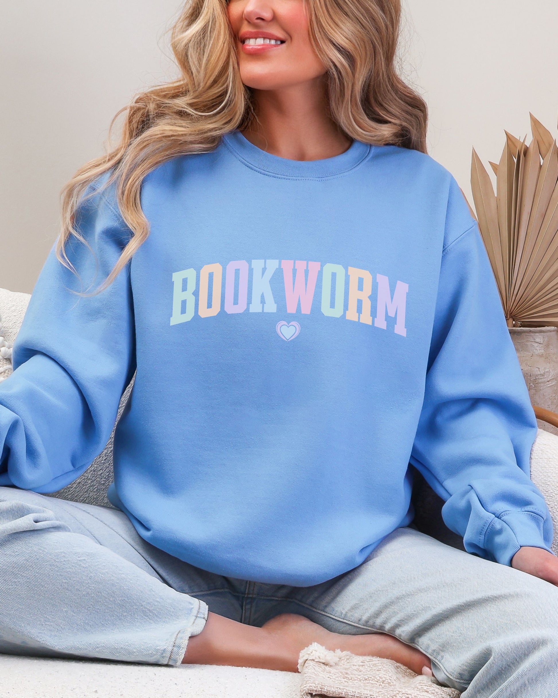 Bookworm Sweatshirt – Cozy Bookish Pastel Graphic Crewneck for Readers