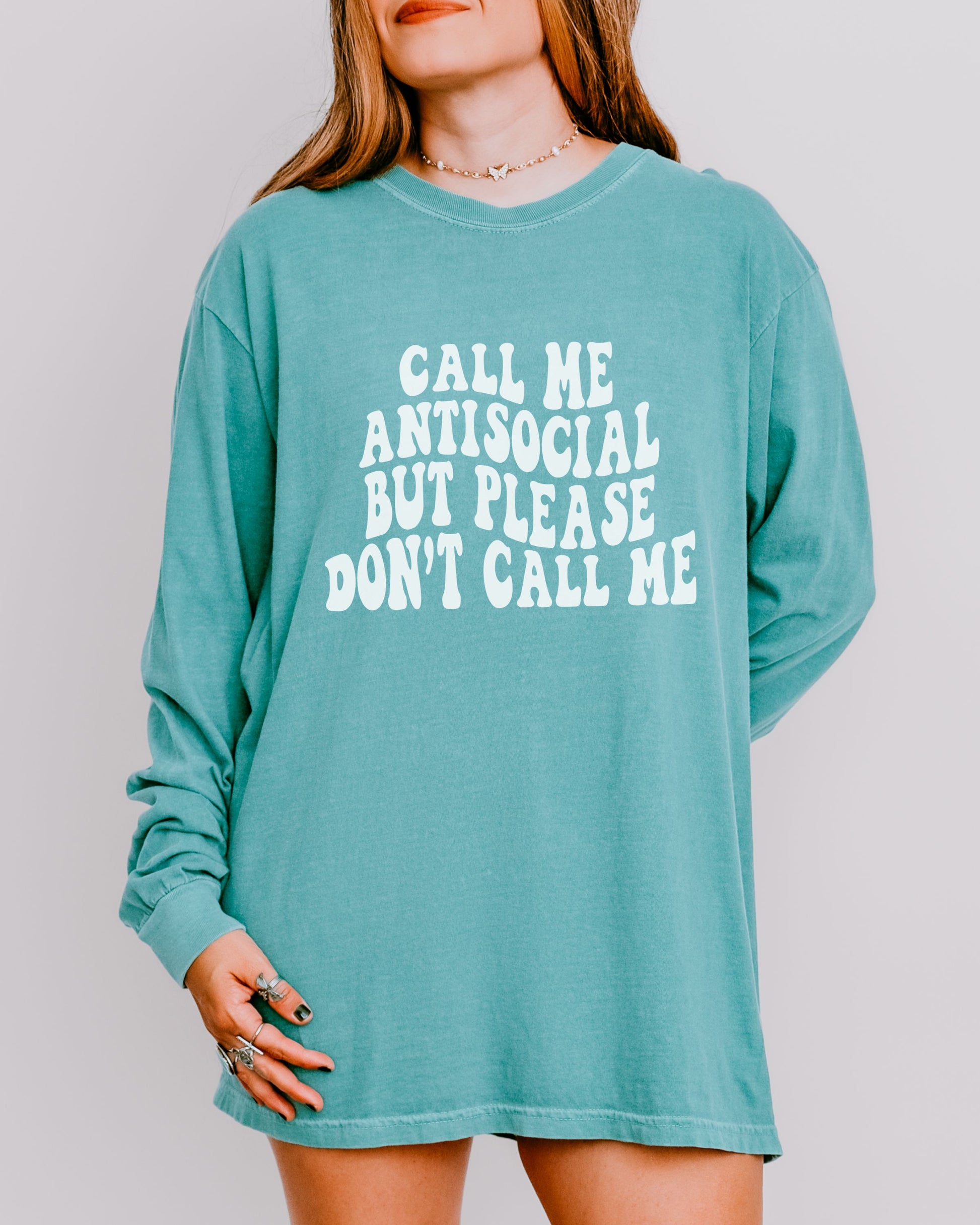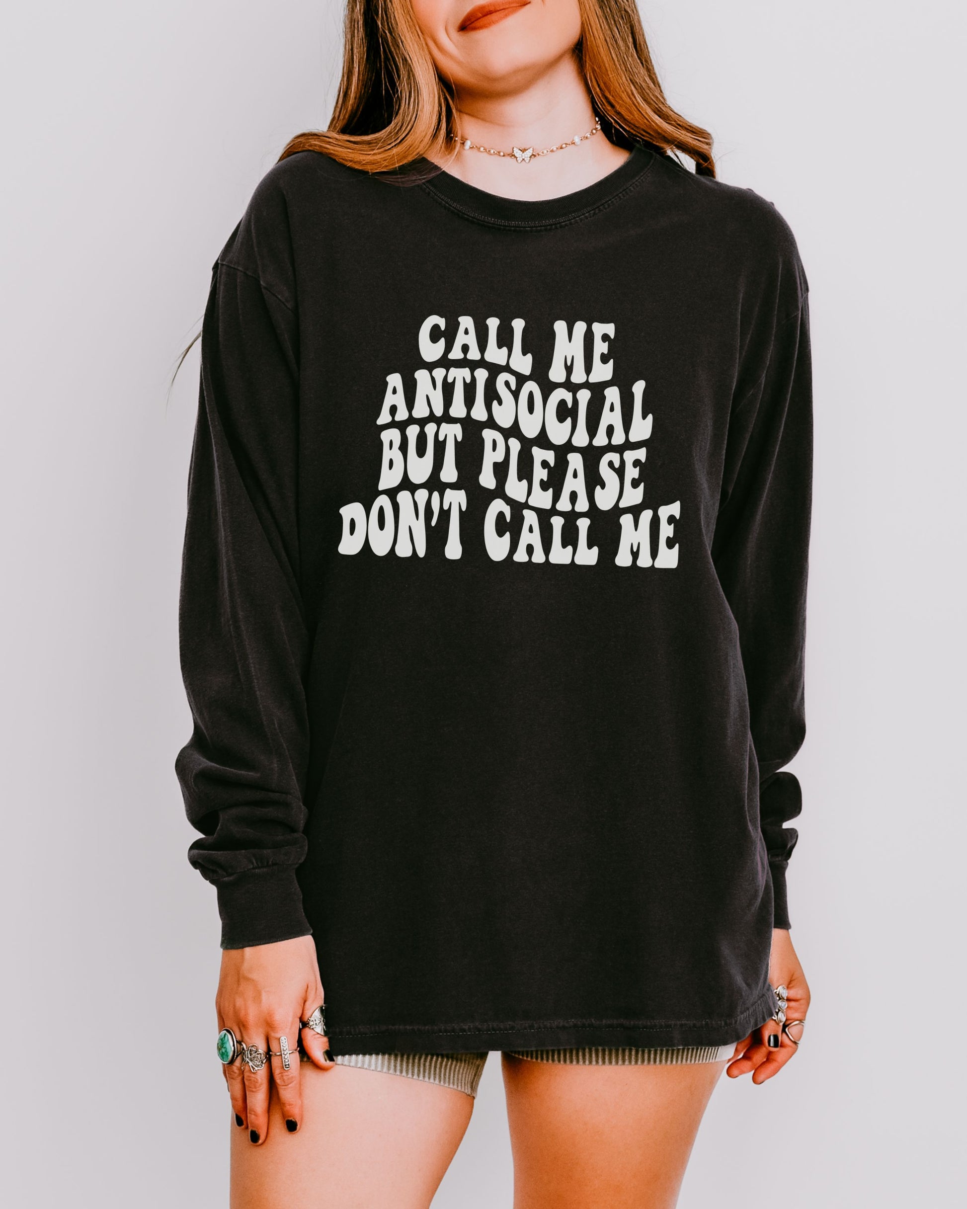 Call Me Antisocial But Please Don’t Call Me Long Sleeve Shirt – Introvert Comfort Colors T-Shirt