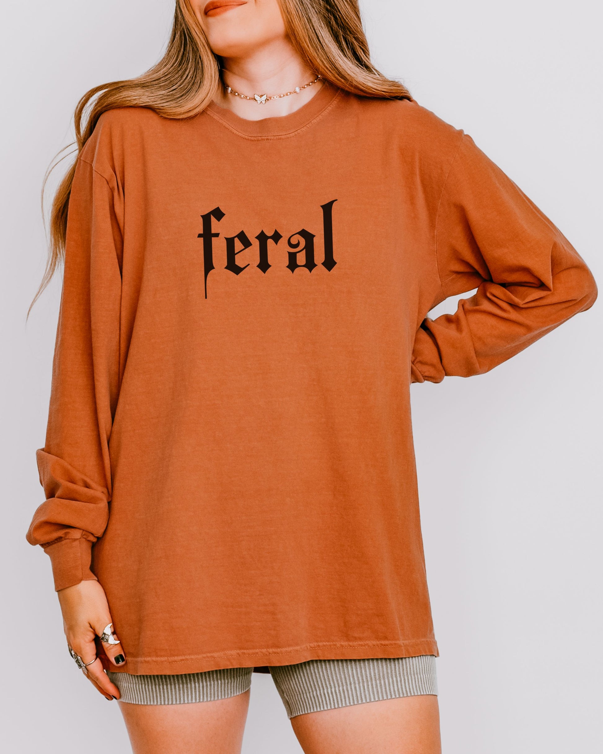 Feral Long Sleeve Shirt – Comfort Colors Gothic Print Tee
