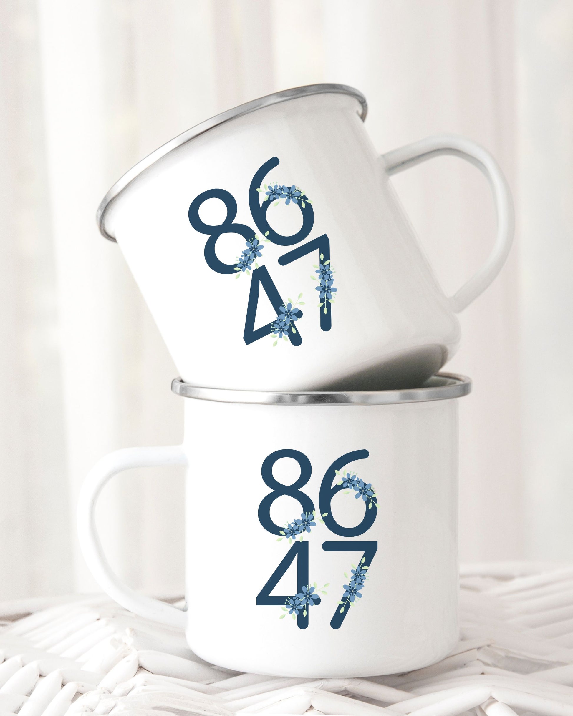 Floral 8647 Mug – Minimalist Political Statement Coffee Cup