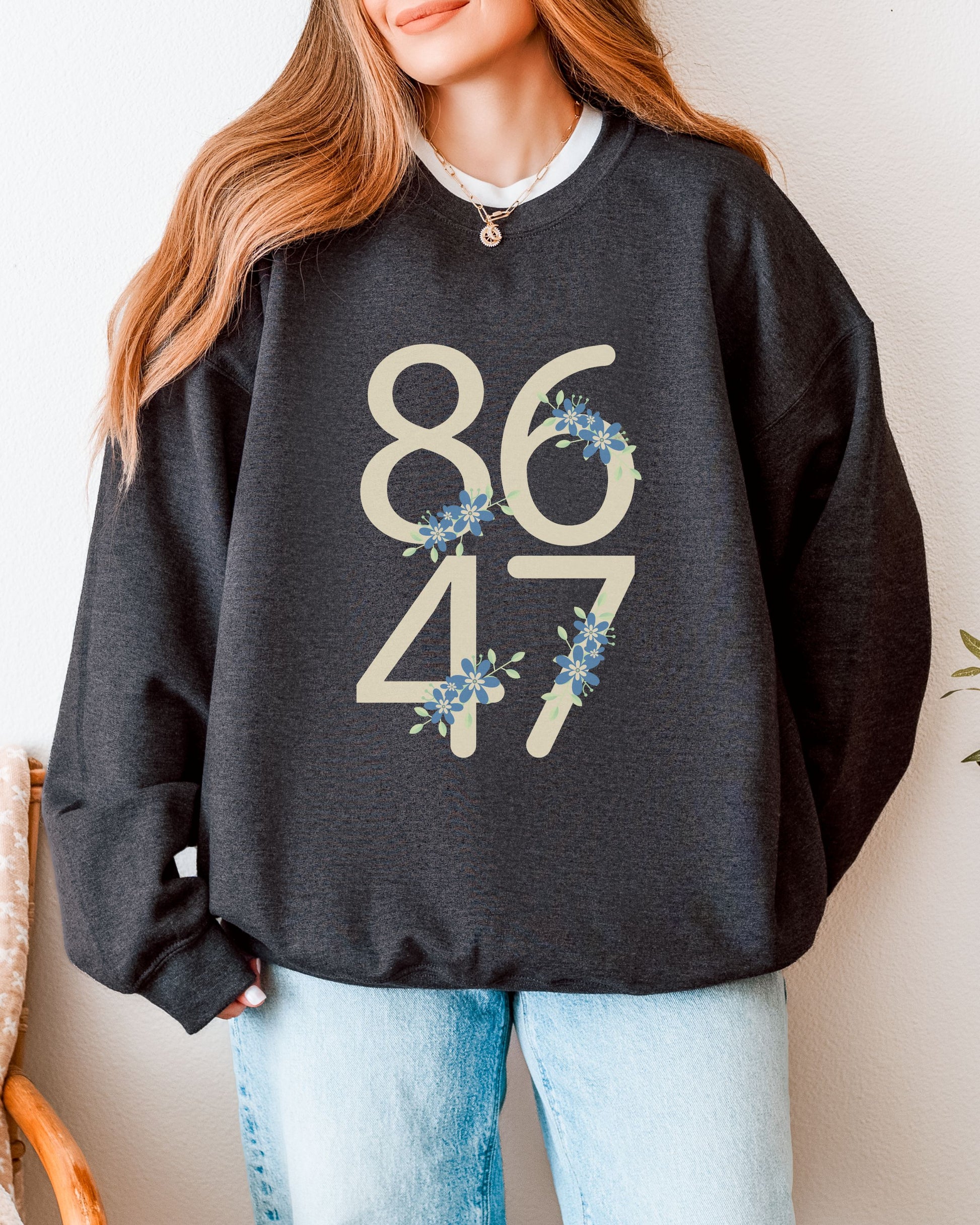 Floral 8647 Sweatshirt – Gildan Minimalist Anti-Trump Political Crewneck