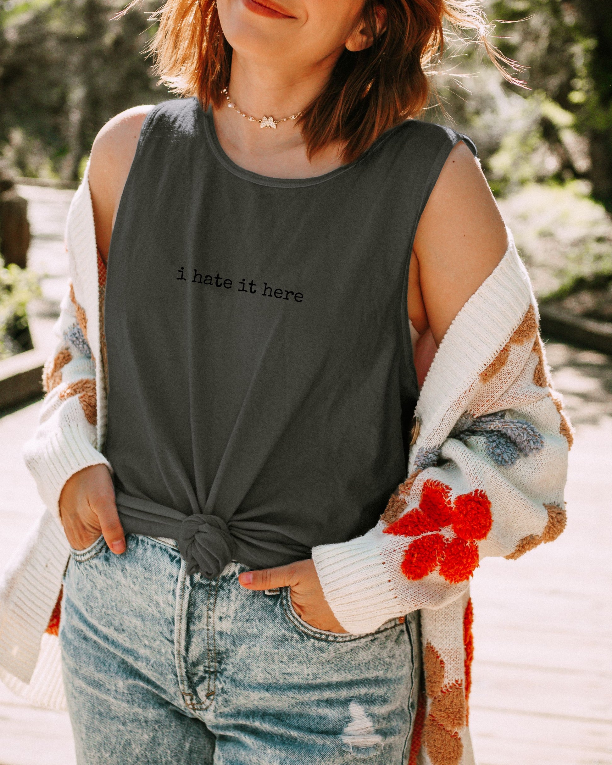 i hate it here Tank Top – Comfort Colors Unisex Minimalist Sarcastic Shirt