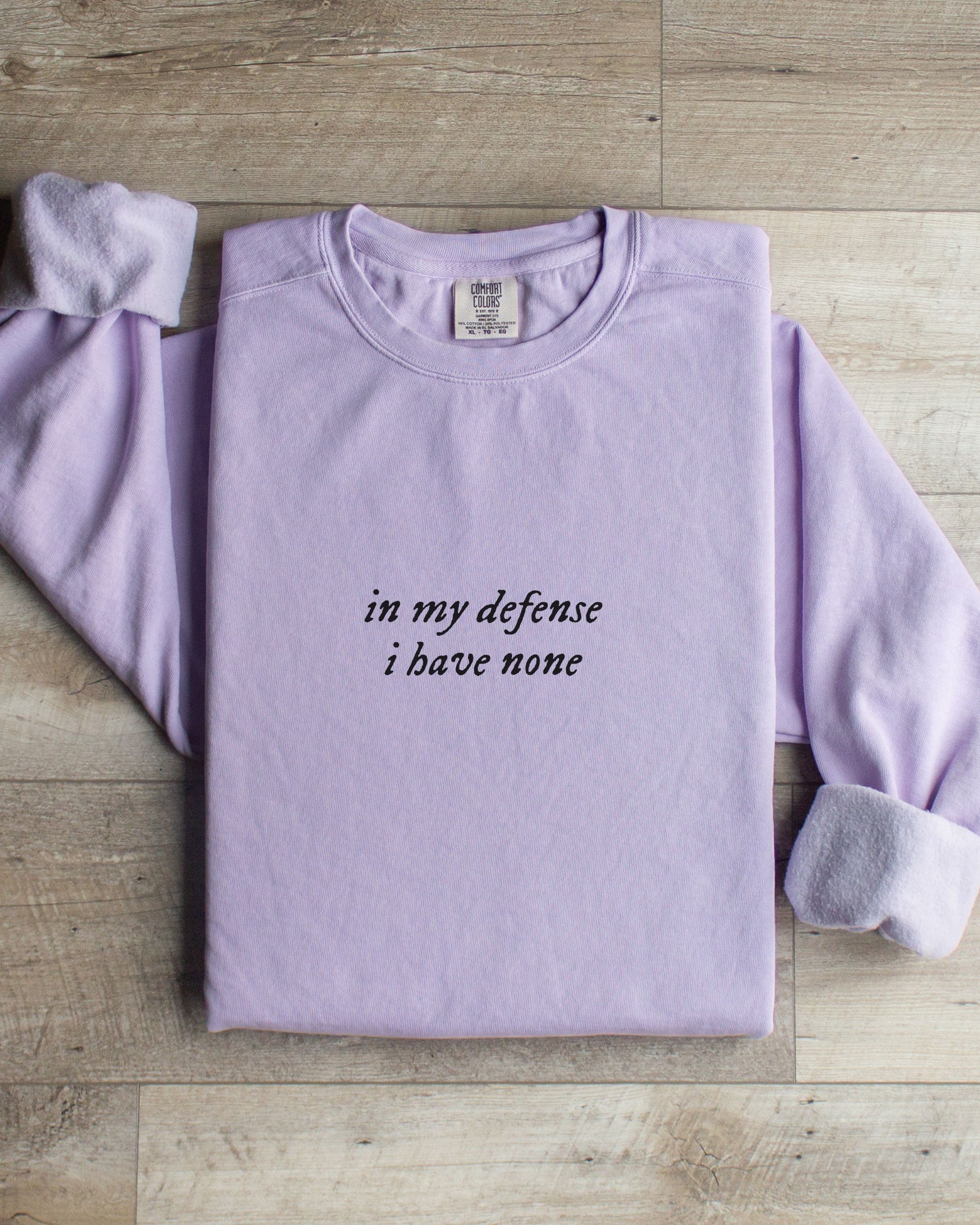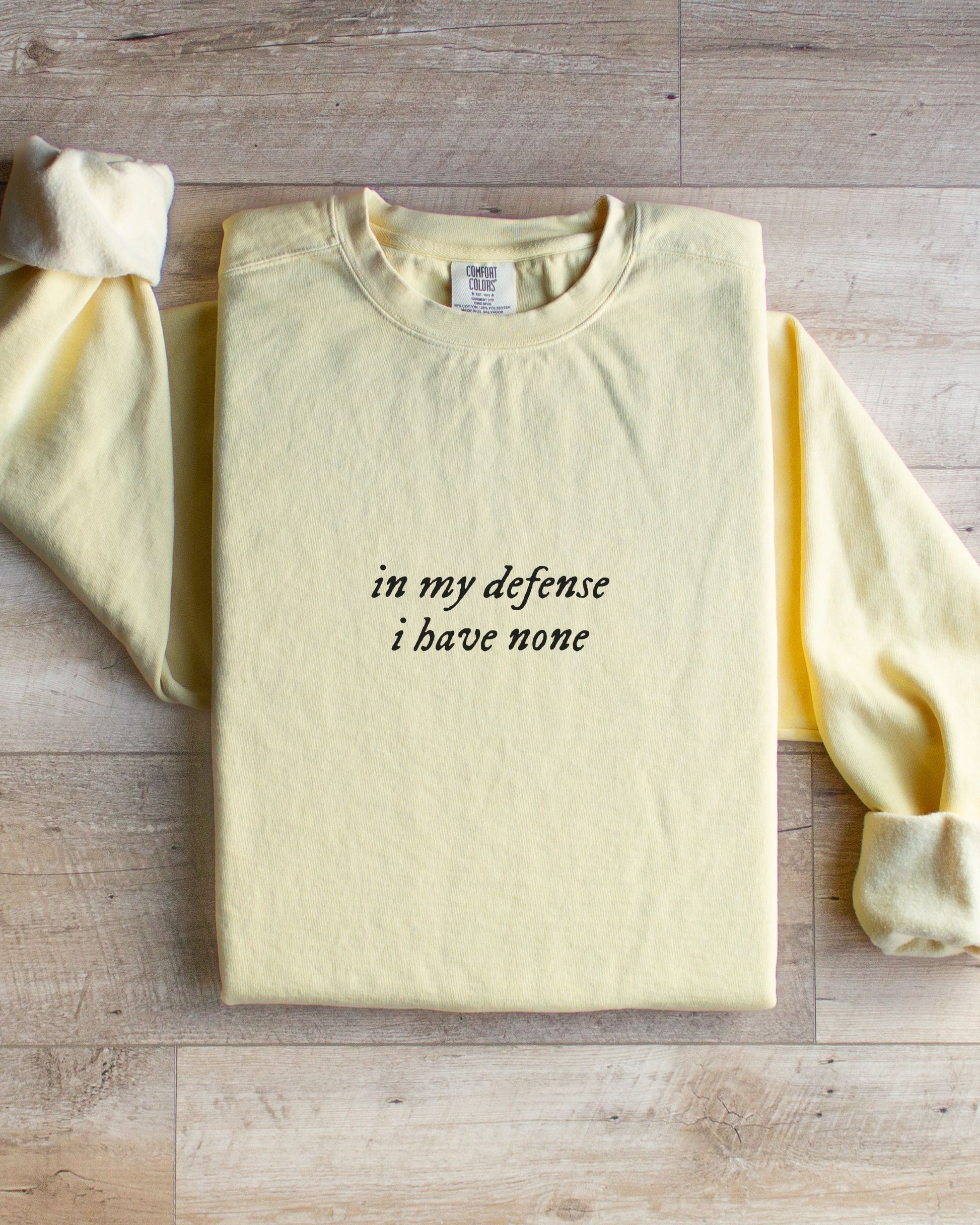 in my defense i have none sweatshirt - Comfort Colors Minimalist Crewneck