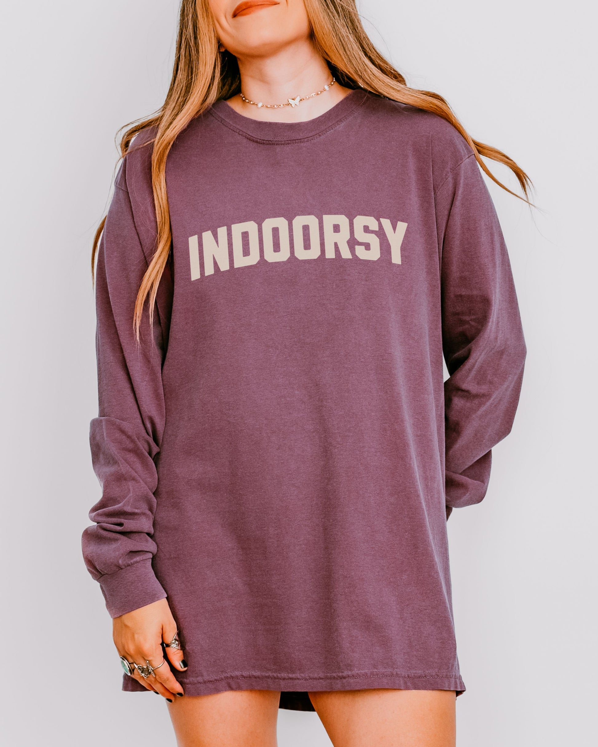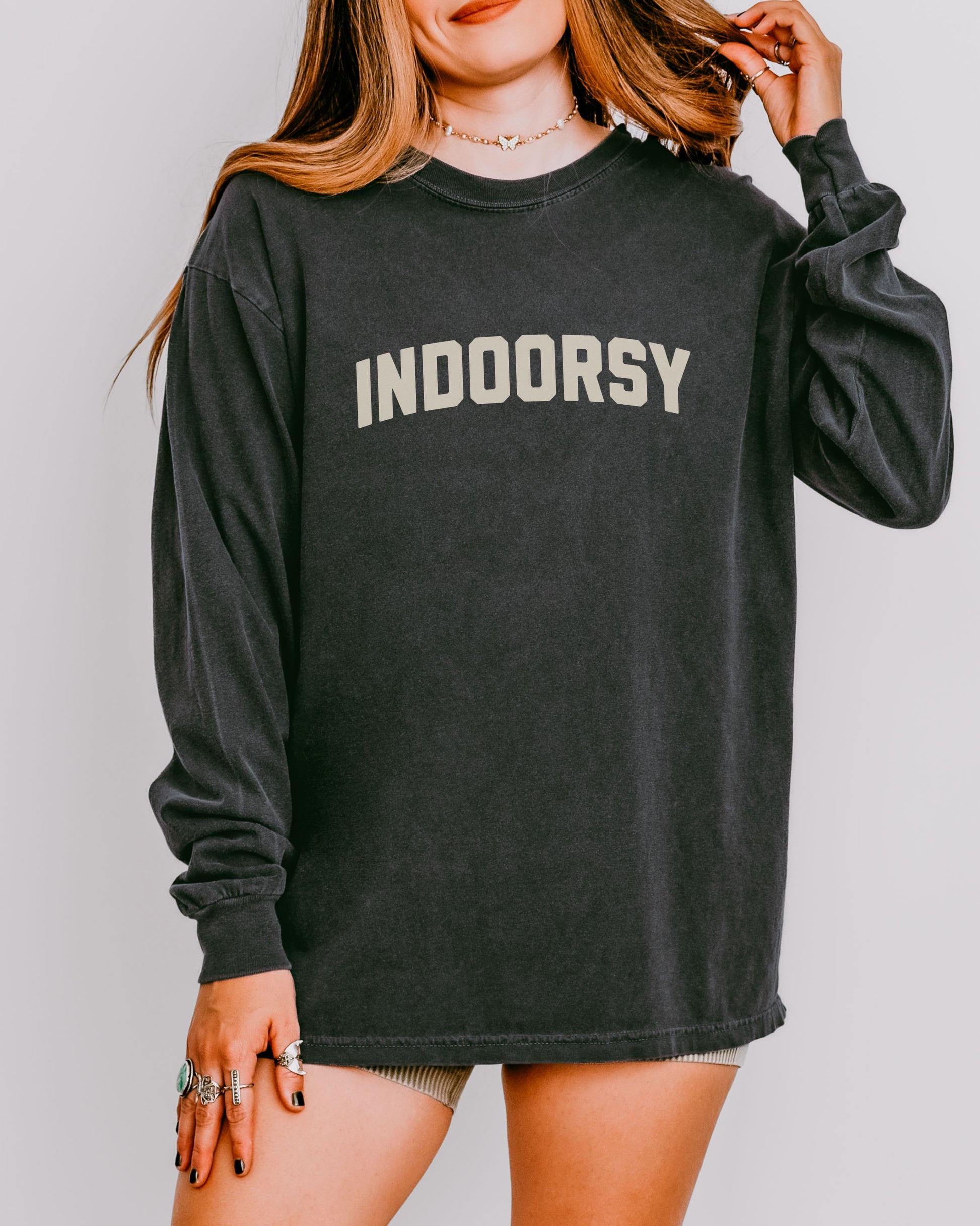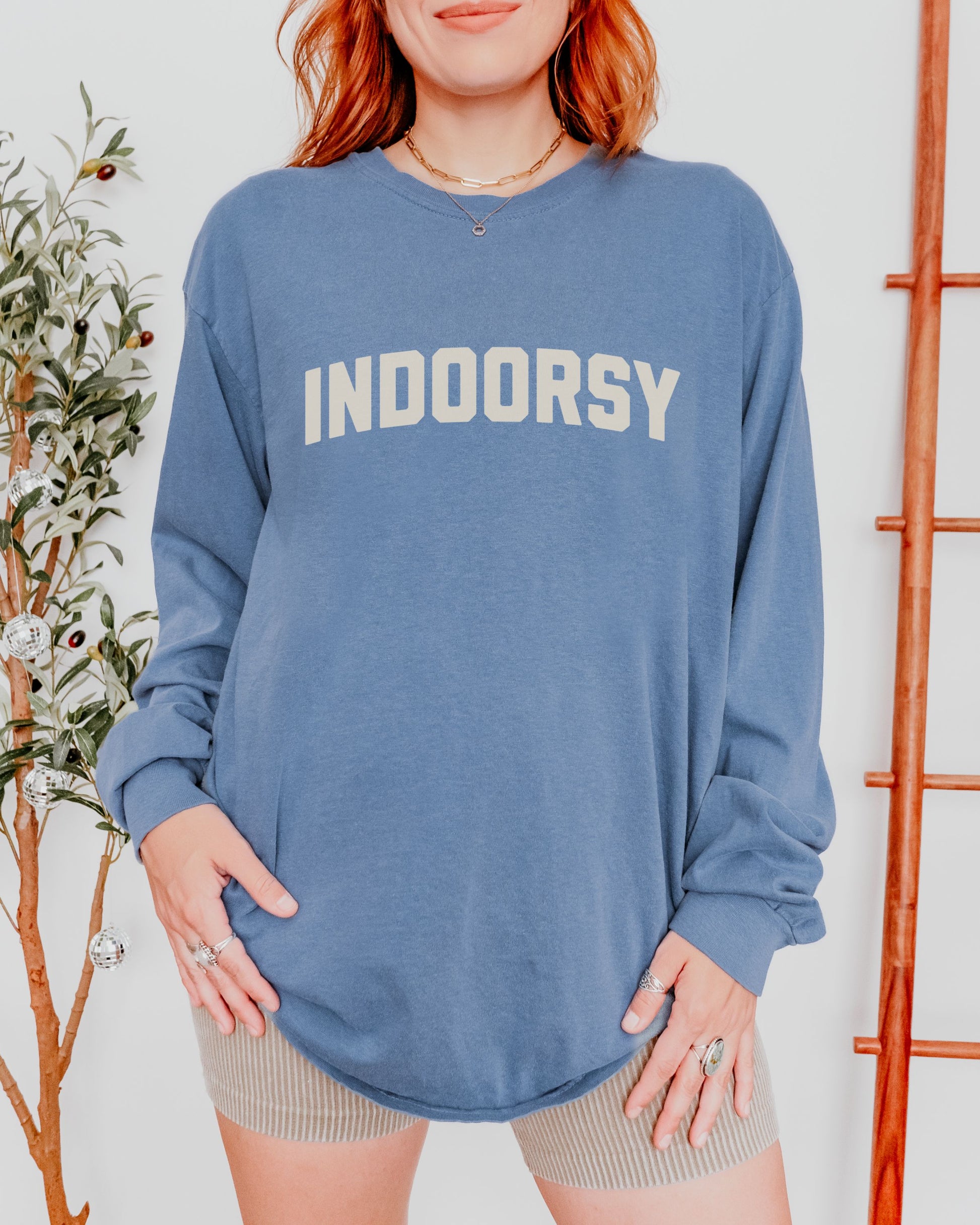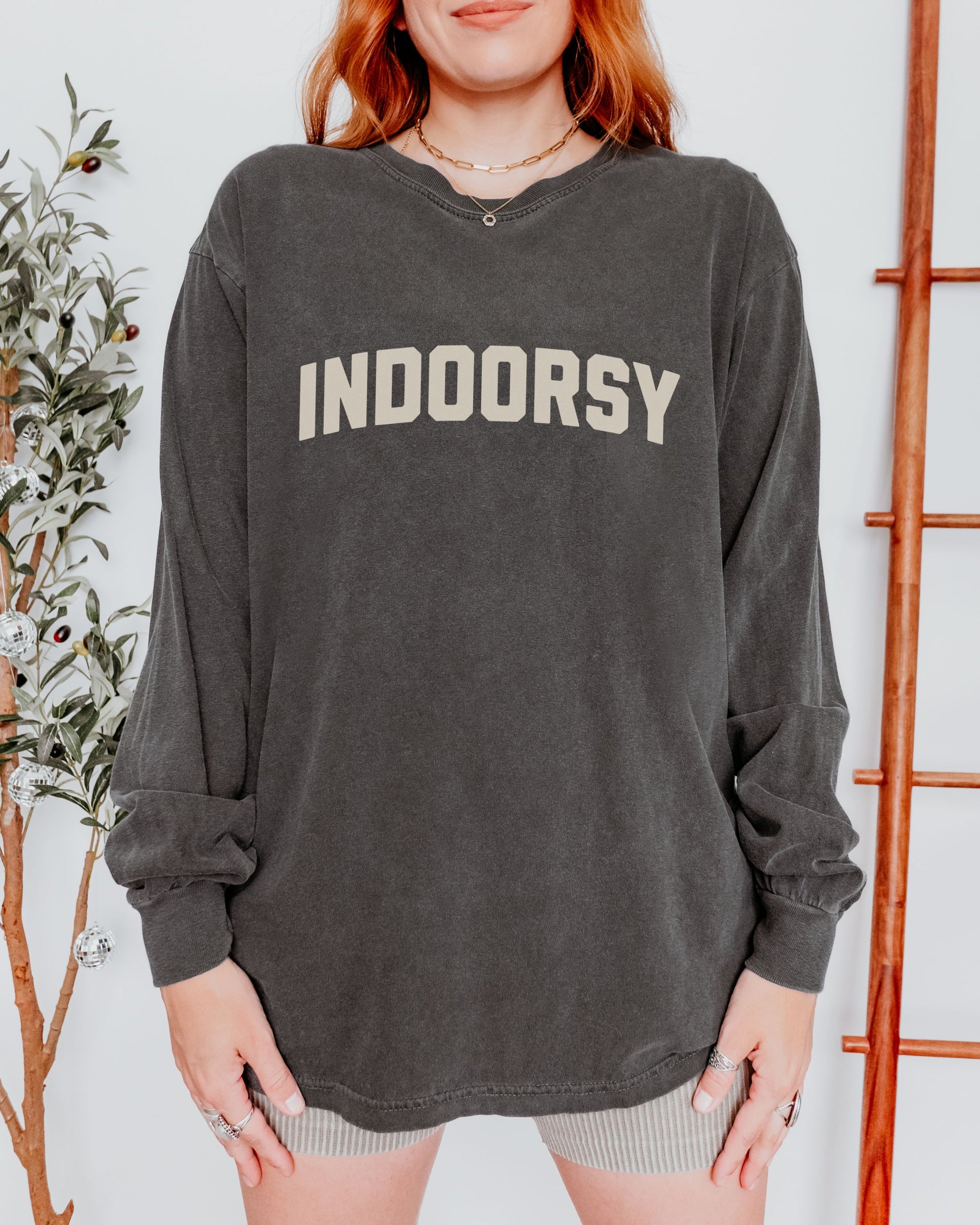Indoorsy Long Sleeve Shirt – Comfort Colors Cozy Sarcastic Tee for Introverts and Homebodies