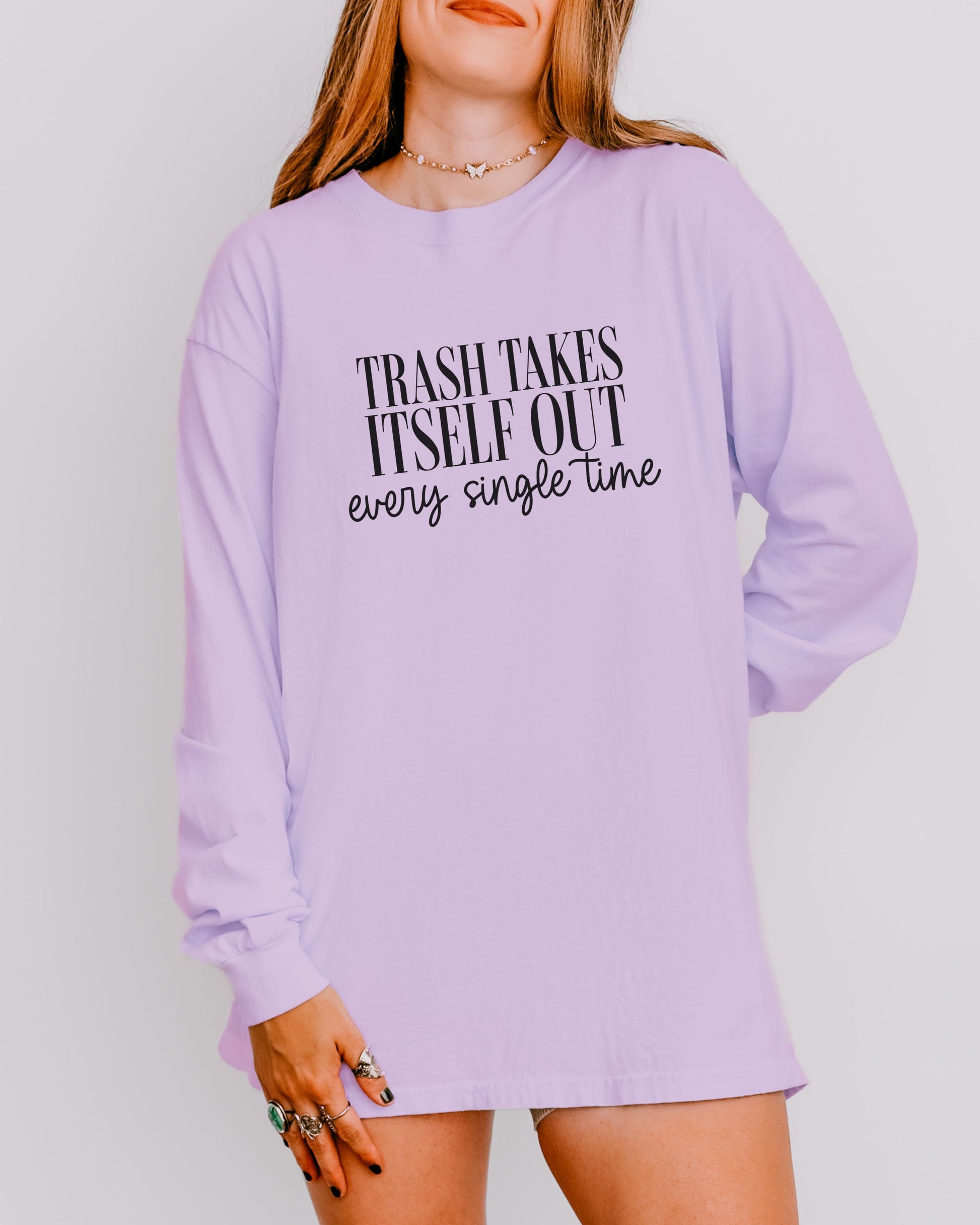 Trash Takes Itself Out Long Sleeve – Comfort Colors Sassy Graphic Tee